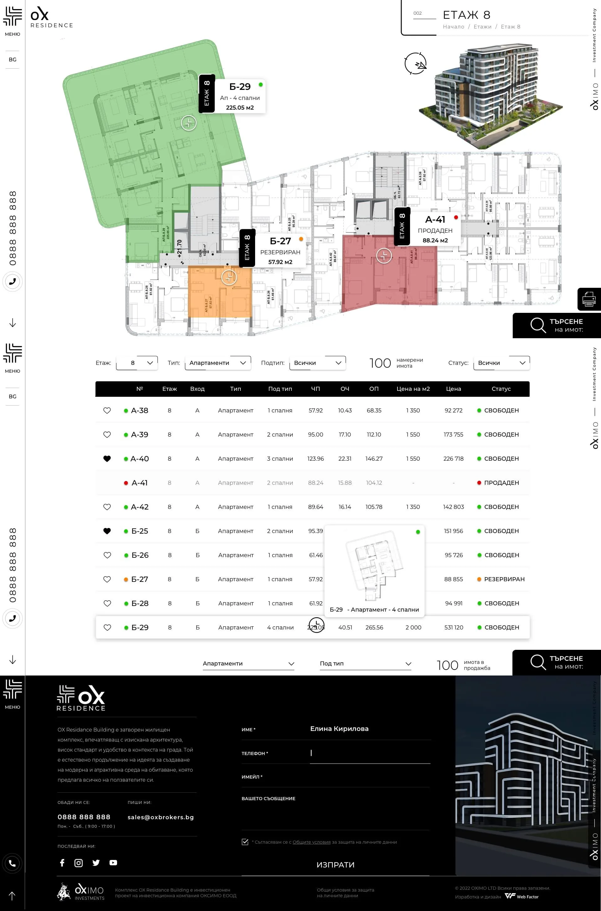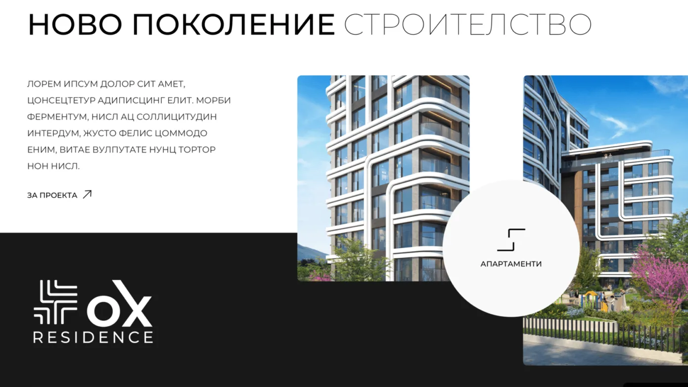 Със създаването на този уебсайт, ние улеснихме потенциалните купувачи да разгледат различните жилищни възможности, които Ox Residence предлага, да получат подробна информация за удобствата и услугите, и да визуализират своя бъдещ дом чрез интерактивни галерии и виртуални обиколки.Ox Residence Сграда ново строителство