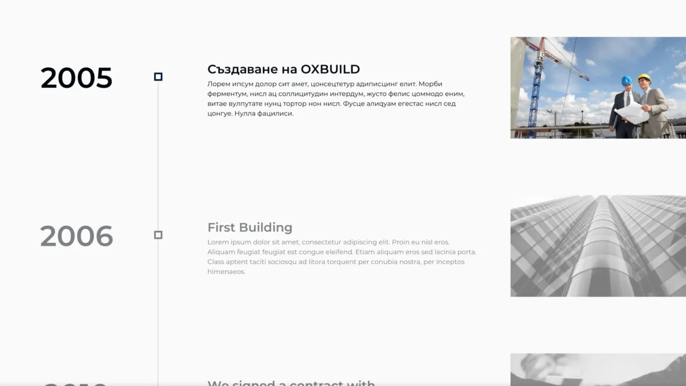 OXBUILD е компания лидер в областта на строителството и довършителните дейности. Тя е изградила безупречната си репутация с над 20-годишен успешен опит на пазара. Тази мащабност задължава разработката на уеб сайт, който напълно да отговаря на високото ниво на бизнес развитие на компанията. Web Factor мобилизира най-добрите си специалисти в различни направления, за да създаде уеб страница с равнопоставен фокус върху различните дейности на OXBUILD, максимална функционалност и модерен информативен дизайн.Oxbuild
