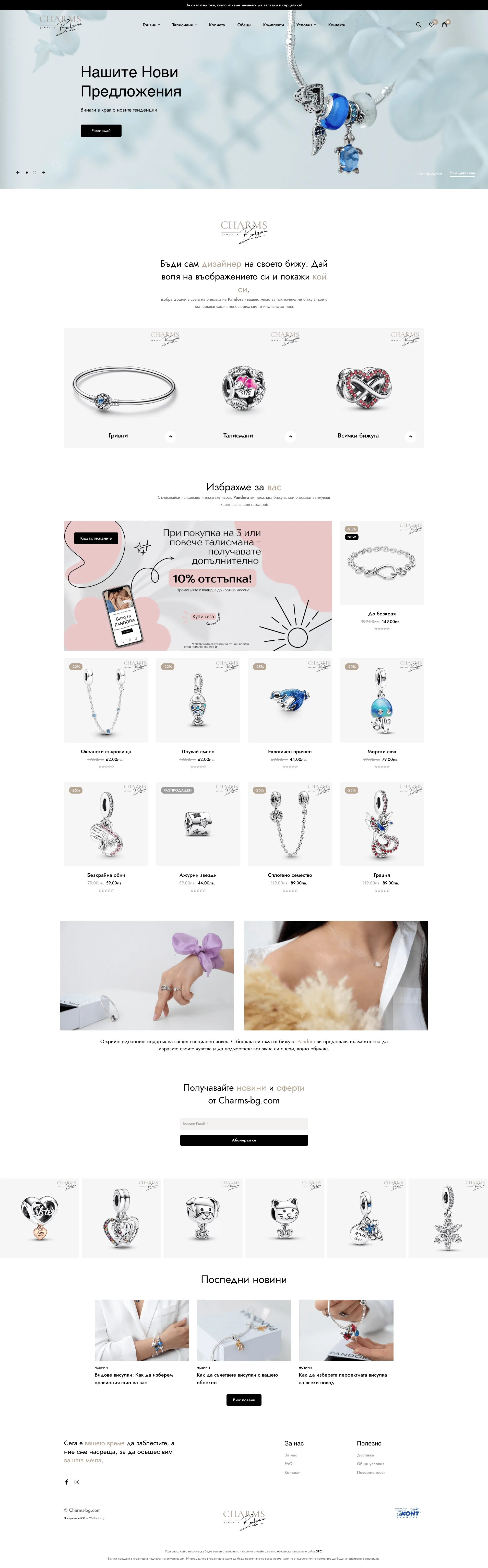 Charms: Блясъкът на Успеха в Онлайн Търговията с Бижута Charms е не просто онлайн магазин за бижута – това е виртуално бижутерско изживяване, което обединява елегантността на дизайна с практичността на модерната технология. Сайтът впечатлява със своя изчистен и стилен интерфейс, предоставяйки на клиентите възможността да открият перфектното бижу чрез интуитивни филтри и разнообразие от продуктови опции. Вградихме удобни и сигурни методи за плащане, които гарантират безпроблемно и безопасно пазаруване. Благодарение на внимателно разработената SEO стратегия, Charms зае водещи позиции в търсачките за България, превръщайки се в предпочитан избор за любителите на бижутата. Резултатите говорят сами: повишен трафик, успешни продажби и доволни клиенти. Ако и вие мечтаете за онлайн магазин, който не само изглежда прекрасно, но и носи реални резултати, ние сме тук, за да създадем вашия успех. Свържете се с нас и да направим първата крачка към вашия онлайн бизнес!