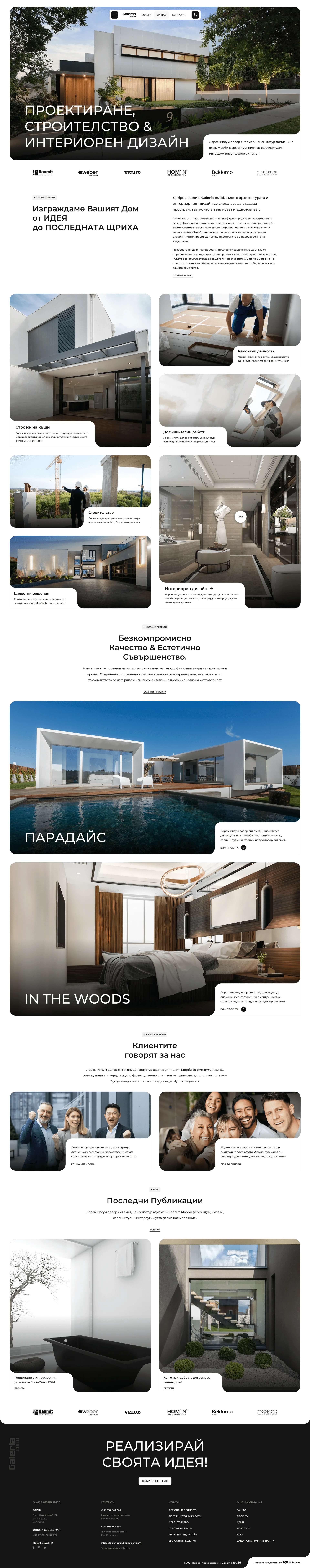 Докоснете се до качеството и успеха на строителството и довършителните работи с Galeria Build. Нашият уебсайт е внимателно проектиран, за да ви преведе през света на авангардни строителни решения и великолепни дизайнерски идеи. Открийте обширното меню от услуги. Това е най-добрият сайт за всичко, свързано със строителство, дизайн и интериорния декор!