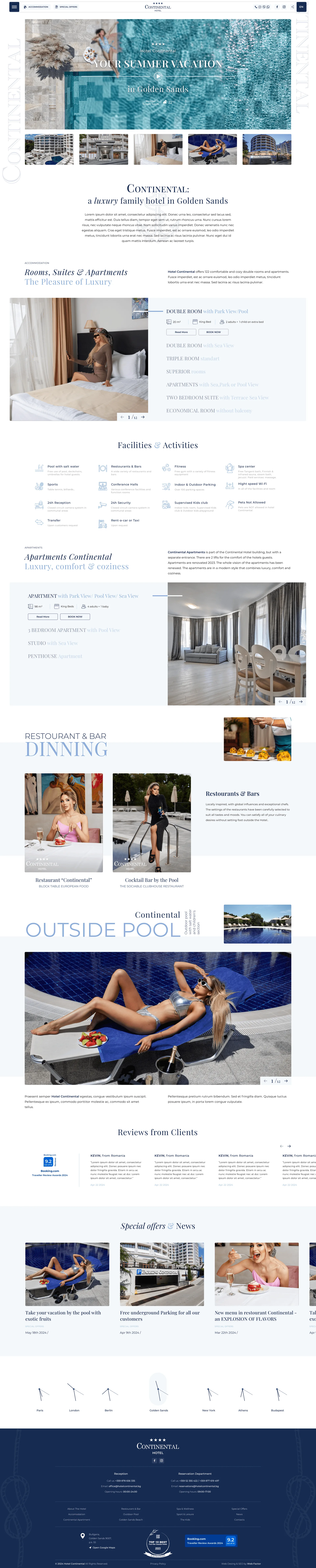 Hotel Continental: Награден Лукс, Представен с Изключителен Уебсайт Hotel Continental заслужено получава признание за най-добър четиризвезден хотел в България за втора поредна година. Успехът на хотела е отразен и във виртуалното пространство чрез модерен, бърз и безупречно изграден уебсайт, който подчертава неговия клас и внимание към детайла. Сайтът предлага изчистен дизайн и лесна навигация, съчетавайки стил и функционалност. Всеки аспект от хотелското изживяване е представен по най-добрия начин, позволявайки на посетителите да се потопят в атмосферата на лукса и комфорта още преди да резервират престоя си. Hotel Continental и неговият уебсайт са пример за това как комбинацията от качество и иновация може да изведе бизнеса на върха. Ако искате вашият хотел да блести и онлайн, ние сме тук, за да го постигнем заедно. Свържете се с нас и нека създадем дигиталния облик, който вашият бранд заслужава!