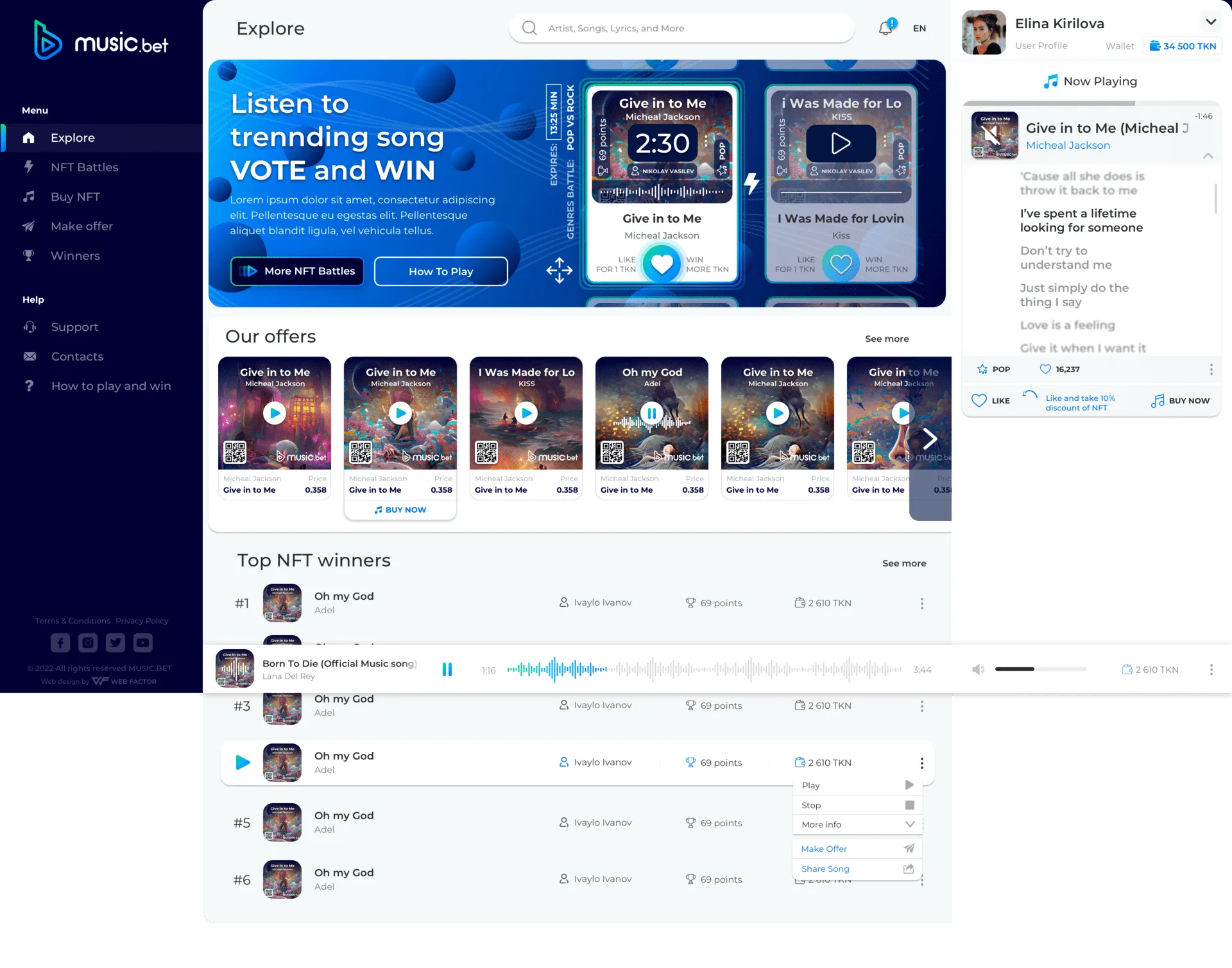 Представяме ви Music. bet, новаторската P2E (Play-to-Earn) NFT игра, която ще промени музикалния бизнес! Потребителите могат да си взаимодействат с любимите си песни, докато се потапят във вълнуваща игра. Играчите могат да придобият ексклузивни NFT (незаменяеми токени) на тази най-съвременна платформа, която символизира всички аспекти на музикалната индустрия.