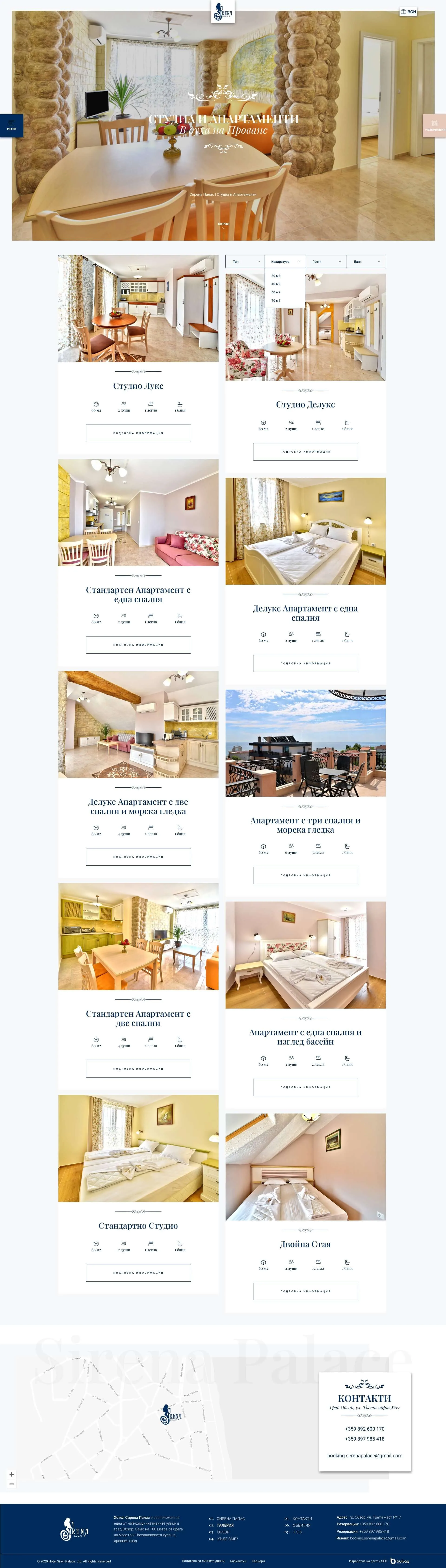 Уеб сайт за хотел Сирена Палас Обзор