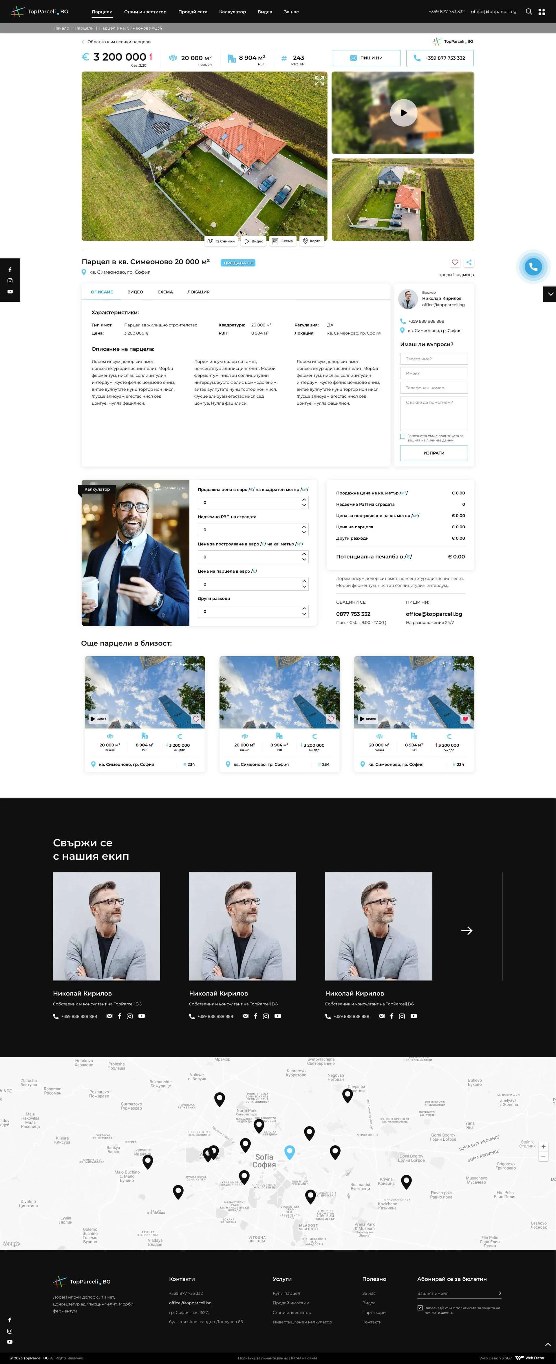 Topparceli.bg е вашият сайт към най-добрите парцели за продажба в София и околните райони. Създадената интерактивна карта ви дава възможност да разгледате свободните парцели и да изберете къде да инвестирате парите си. Чрез сайта може да продадете вашия парцел на максимално изгодна цена. Модерната визия на сайта е допълнена с необходимата информация за услугите.