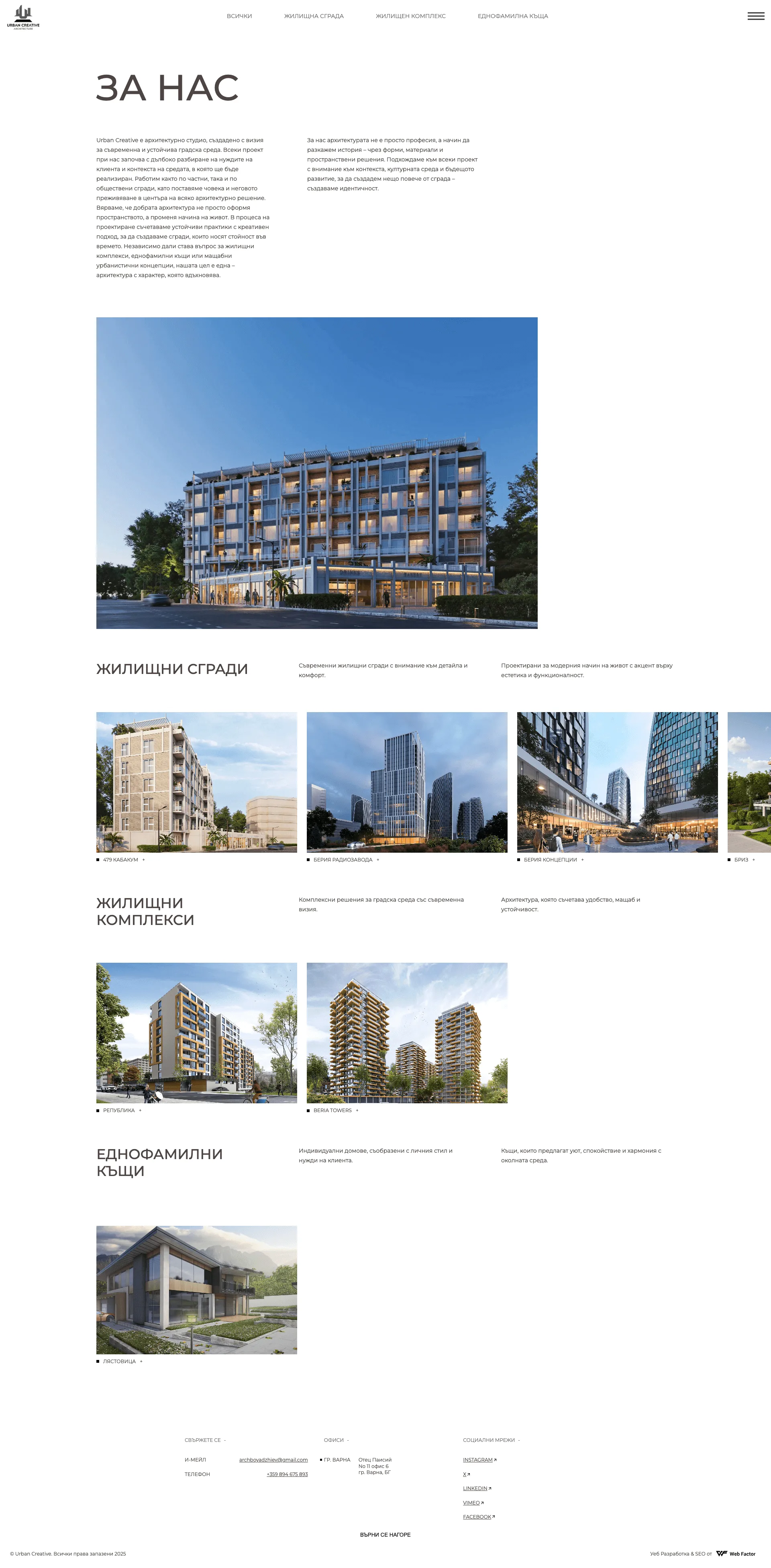 Архитектурно студио e специализирано в проектиране на жилищни сгради, комплекси и еднофамилни къщи. Студиото комбинира дълбоко разбиране за нуждите на клиента и контекста на терена с креативен подход и устойчиви практики. Всеки проект на Urban Creative е ориентиран към комфорта и функционалността, създавайки пространства с характер и вдъхновение за съвременния начин на живот.